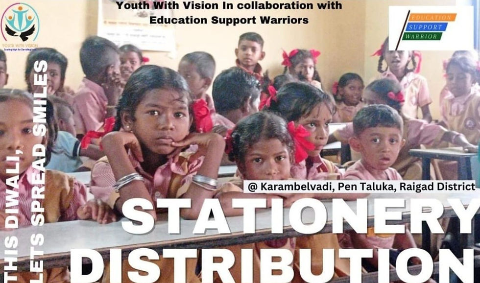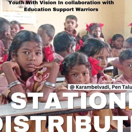 A collaborative education outreach initiative supporting 90 tribal students in Kalambveli, Raigad, through distribution of essential learning materials in partnership with Youth With Vision.